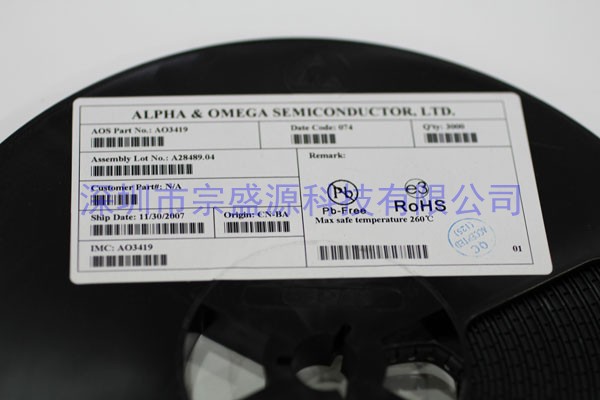 產品名稱:AOS MOS管 AO3419 SOT-23